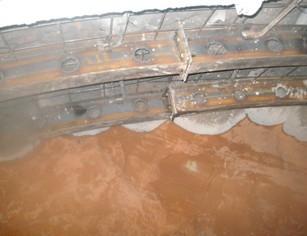 隧道通過基巖為砂泥巖,產狀平緩,層理及節理較發育,易產生冒頂塌落現象。